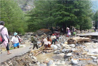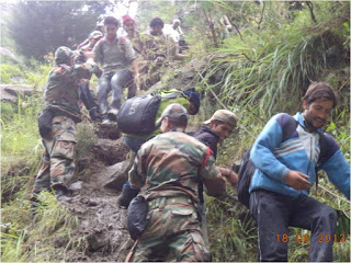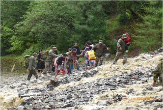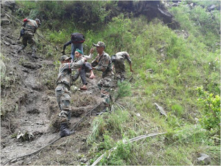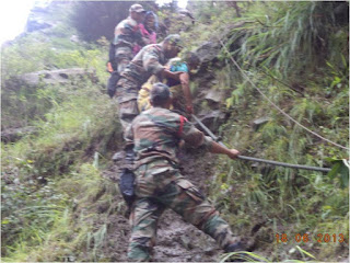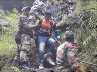 In Uttarakhand, Army is undertaking rescue and relief operations in four sectors Harsil, Kedarnath, Joshimath and Dharchula. Army column evacuated 600 people across a rivulet by laying a temporary bridge of wooden logs. All the people have now been brought to safety. Two officers and 24 soldiers have been inducted by helicopter this morning into Sirsi near Gauri Kund, 17 km short of Kedarnath. Evacuation of pilgrims by foot is presently under way. In Joshimath sector, NH-58 has been washed away at Govindghat. More than 2000 have been evacuated on foot and are now housed in Joshimath. 1100 are in Army shelters. Efforts are underway to lay cable bridge across Alaknanda to evacuate stranded Hemkund Sahib pilgrims. More than 450 were evacuated yesterday. Hundreds of people have been evacuated from low lying areas of Dharchula and adjoining areas flooded by swollen Kali River. Army colums are presently in the process of evacuating marooned villagers at Rawli 8 km west of Bijnor. One Army relief column is now evacuating stranded people from Shamili and Daulatpur areas of Saharanpur district.