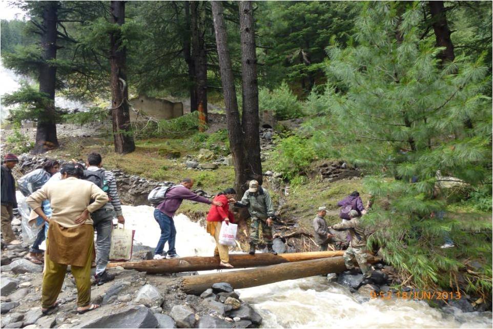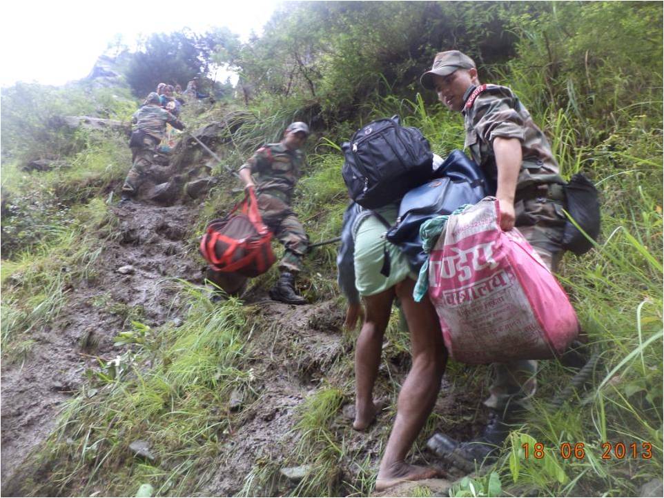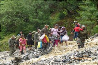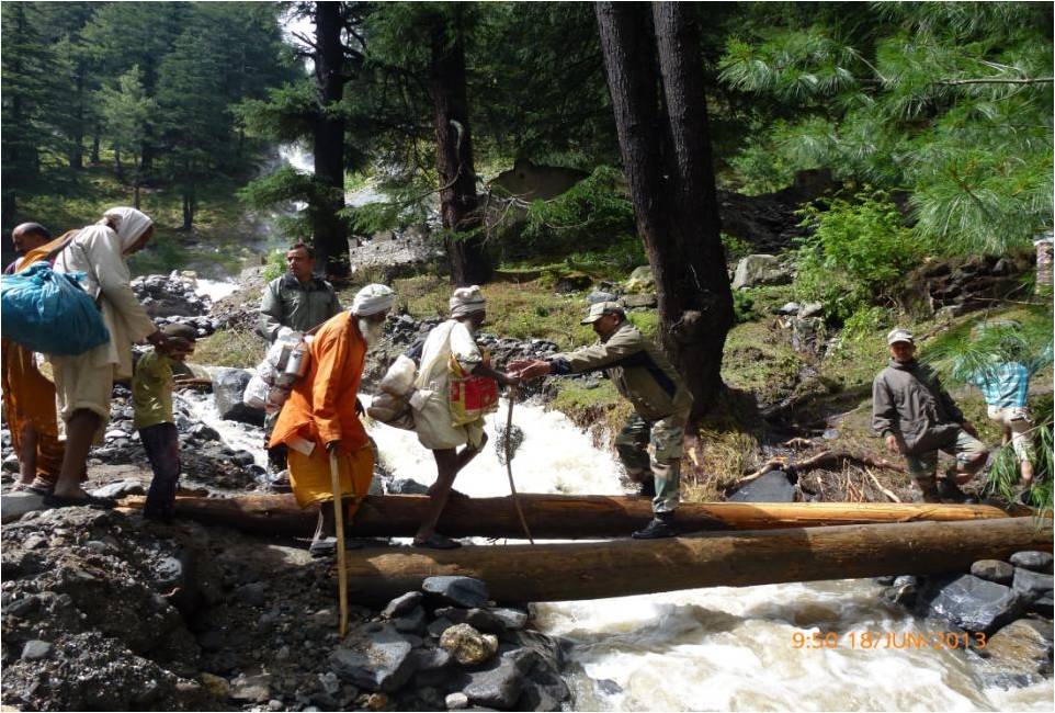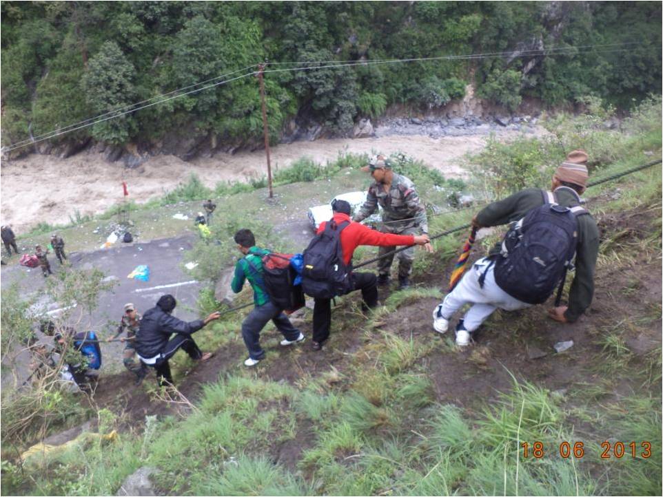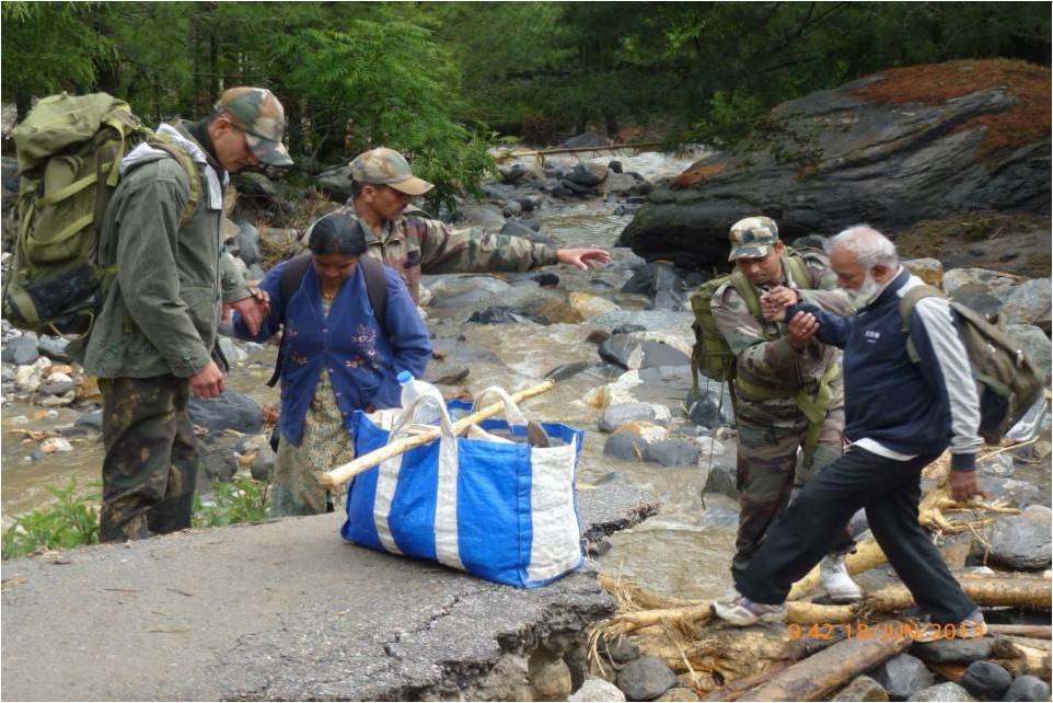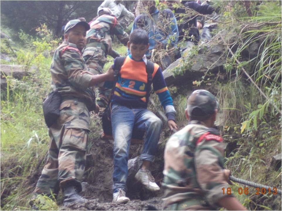 In Uttarakhand, Army is undertaking rescue and relief operations in four sectors Harsil, Kedarnath, Joshimath and Dharchula. Army column evacuated 600 people across a rivulet by laying a temporary bridge of wooden logs. All the people have now been brought to safety. Two officers and 24 soldiers have been inducted by helicopter this morning into Sirsi near Gauri Kund, 17 km short of Kedarnath. Evacuation of pilgrims by foot is presently under way. In Joshimath sector, NH-58 has been washed away at Govindghat. More than 2000 have been evacuated on foot and are now housed in Joshimath. 1100 are in Army shelters. Efforts are underway to lay cable bridge across Alaknanda to evacuate stranded Hemkund Sahib pilgrims. More than 450 were evacuated yesterday. Hundreds of people have been evacuated from low lying areas of Dharchula and adjoining areas flooded by swollen Kali River. Army colums are presently in the process of evacuating marooned villagers at Rawli 8 km west of Bijnor. One Army relief column is now evacuating stranded people from Shamili and Daulatpur areas of Saharanpur district.