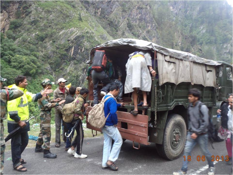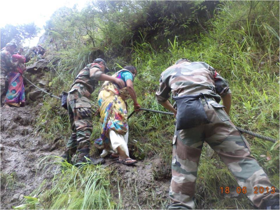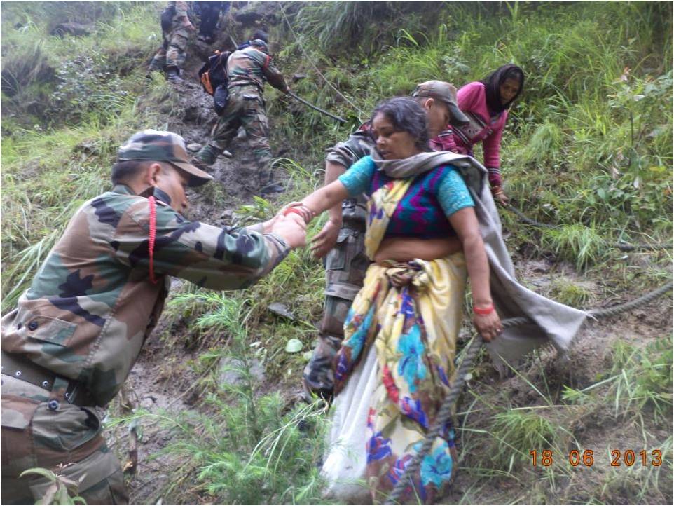 More than 5000 Army men fanned out across the districts of Chamoli, Rudraprayag, Uttarkashi and Pithoragarh districts in Uttarakhand and Saharanpur, Bijnor, Muzaffarnagar and Pilibhit districts of Uttar Pradesh in order to rescue and provide relief to stranded civil population affected by unprecedented floods. Army assistance Centres at Harsil, Rudraprayag, Joshimath, Mana, Gagriya, Govindghat and Dharchula have been providing shelter, food, first aid and fresh water to hundreds of pilgrims stranded at various locations due to torrential rain and swollen rivers. Eight quick reaction medical teams established medical aid posts at a number of locations and four ambulance vehicles have been deployed to evacuate injured people.The Air Force has deployed 12 Mi-17 helicopters .