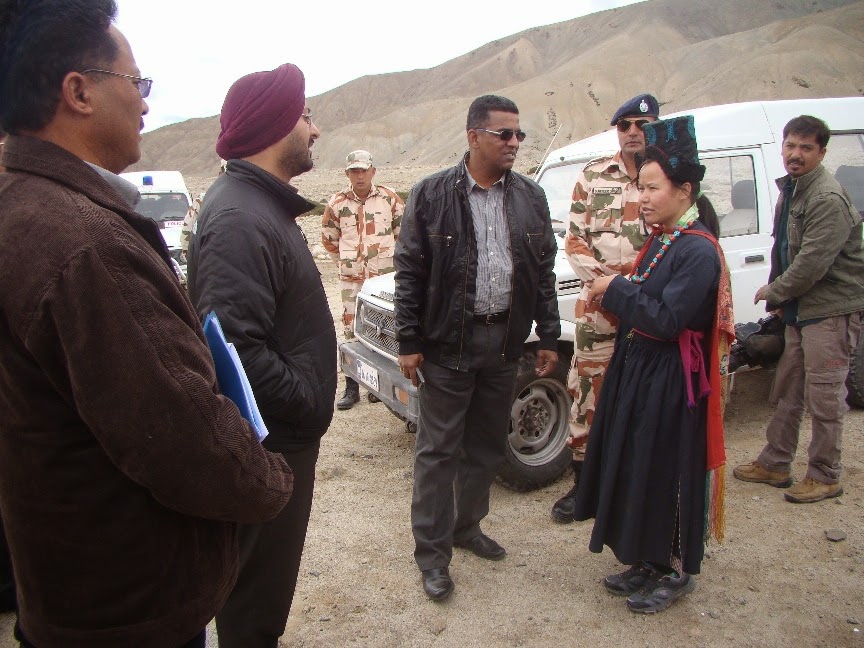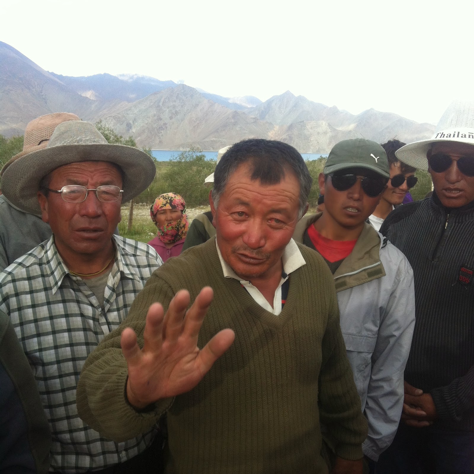Day II, 30 July: Two days of bone crushing travel has sapped the energy but not the spirit, so we set out again around 7.30 am, this time the destination is Chumar in the news more regularly than other hot spots in Ladakh along the LAC. Once again, unusual rains have cut off the shorter route. So it is not before noon that we reach the banks of the other well known lake in Ladakh–Tso Moriri. But our destination is still at least an hour away. Chumar, on the tri-junction of Ladakh, Himachal Pradesh and China has been the bone of contention between India and China for the last couple of years. In fact, the April 2013, 21-day incursion by PLA troops about 300 km up north in the Depsang plains of Dault Beg Oldie is said to have been done to relieve Indian pressure on weaker Chinese positions in Chumar! Here the local councilor (equivalent of a minister) of the Ladakh Autonomous Hill Development Council is present at the public meeting. And he is one angry public representative! He let’s loose a litany of grievances against the government, and especially against the forces–ITBP and Army for preventing his constituents from using the traditional pastures for their cattle. ” We have been going to Chepzi (an area that is been with the Chinese at least since the 1970s) but now we are stopped well within our own territory. Our pastures have shrunk. We are facing a livelihood crises,” he alleges. The Collector listens to him with patience and promises to check the exact position with Army and ITBP but the assembled people will have none of it. They repeatedly request the Collector to go with them to the area, not very far from where the meeting is taking place. He agrees.