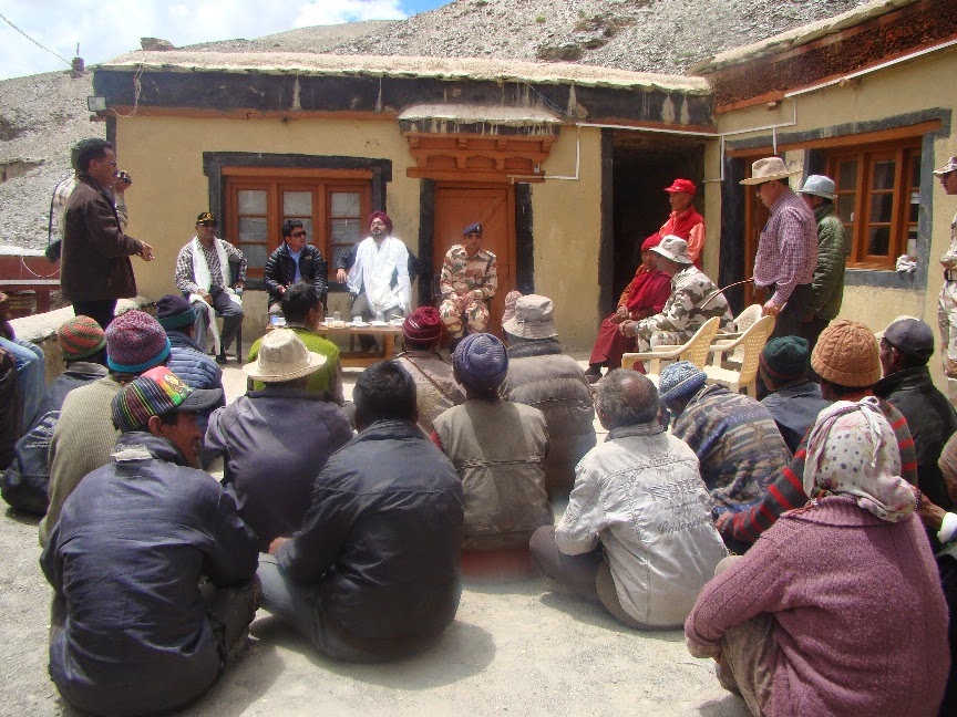 Local ITBP commandants sit with the District Collector for a meeting with the villagers to hear their problems first hand. Phabrong villagers have a big grouse: They are prevented from taking their cattle to the traditional pasture land close to the LAC; the ITBP has a standard reply: Agreements between India and China mandates certain restrictions and therefore they are bound by Govt of India guidelines! A refrain we were to hear throughout the 72-hour, 1250 km journey in Eastern Ladakh earlier this week.