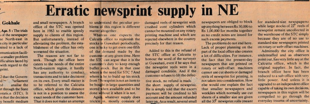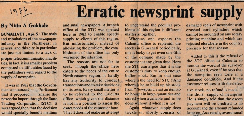 January 1, 1984 Resumption of talks on Assam essential; Barbora May 19, 1984 Bhandari’s ouster a price of defiance