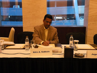Don’t miss Vipin Pubby (Currently Resident Editor, Indian Express, Chandigarh, on extreme right in specs) and Nirmalya Banerjee, currently with TOI in Kolkatta, listening intently. Behind me is Seema Guha
