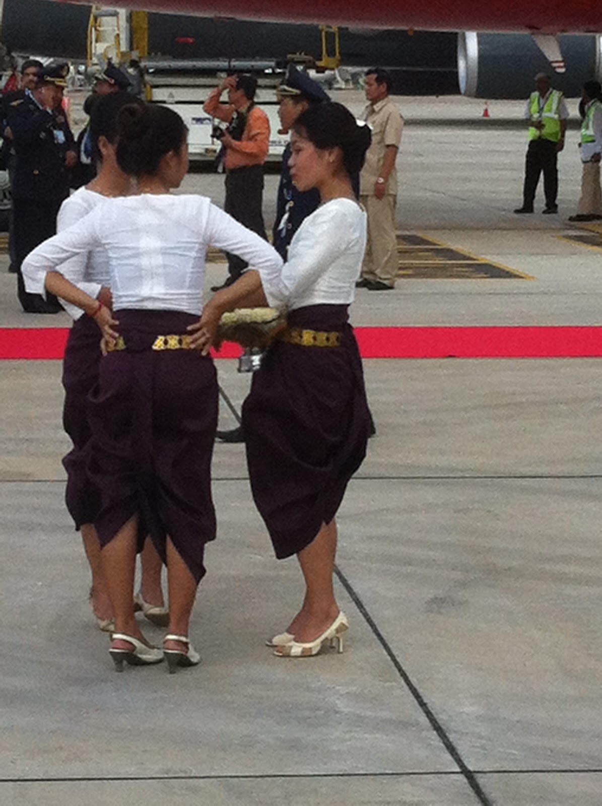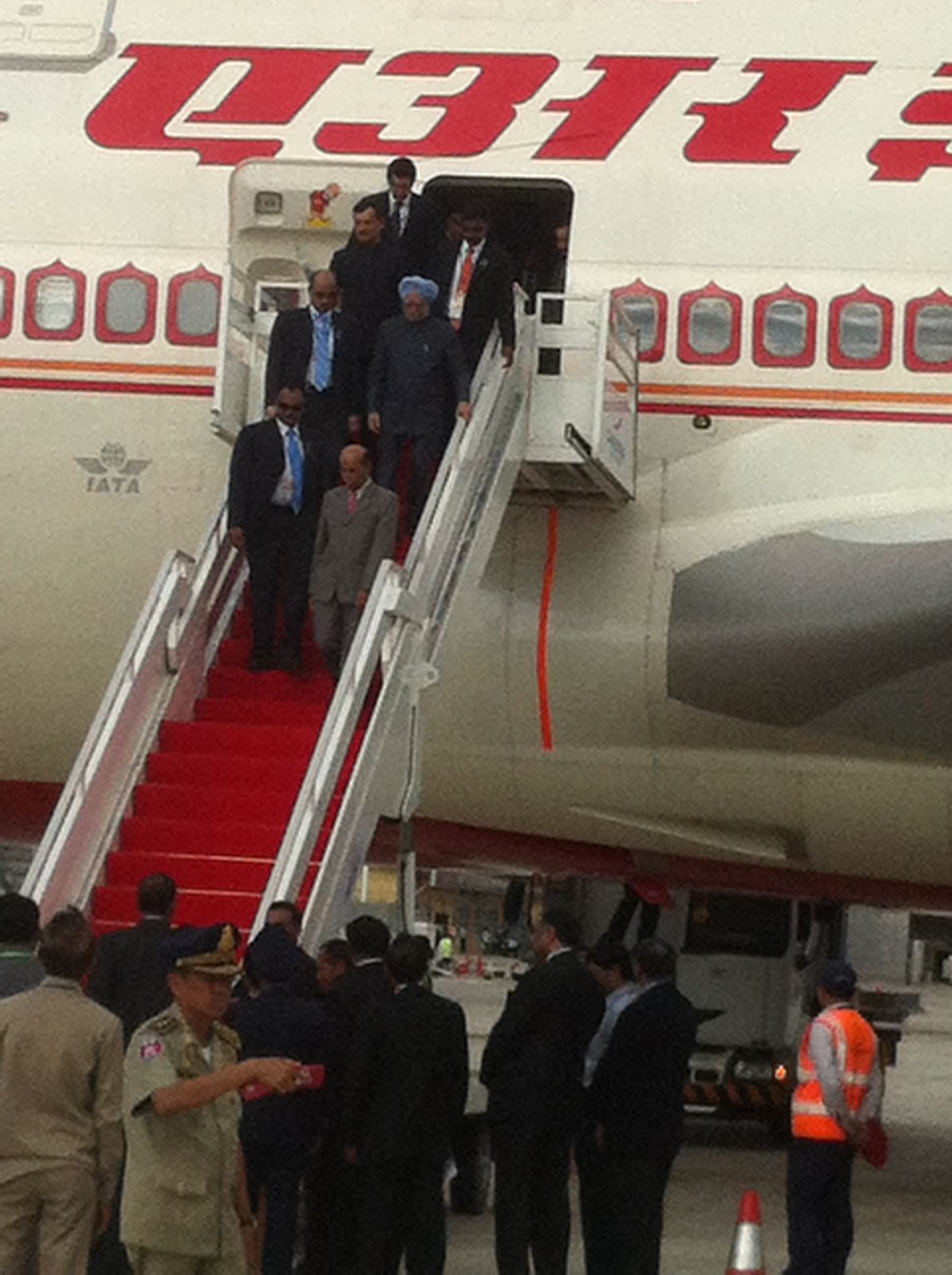 As Air India One touched down at the Phnom Penh airport this afternoon, an Air China Jumbo Jet was already parked in the VIP arrival tarmac.
