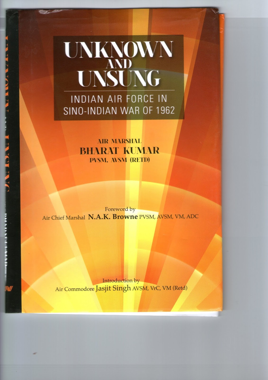 Air Marshal Bharat Kumar, an air veteran of 1959 vintage has come up with an extremely well-researched book Unknown & Unsung: Indian Air Force in Sino-Indian War of 1962 which should put at rest the 50-year old speculation over the puzzling decision not to press India’s combat air power in the conflict. Through meticulous research, backed by internal documents accessed from Air HQs, from US and UK archives and other relevant correspondence of the time, Air Marshal Bharat Kumar has served up a fascinating account that unveils hitherto unknown facets of the IAF’s contribution to the 1962 war and conclusively demolishes various myths built up over the past five decades.First, he effectively demonstrates the laudable role played by the IAF’s transport fleet, both fixed wing and helicopters before and during the 1962 war. Several unconventional and sometimes downright suicidal methods were adopted by air warriors to support the land forces in the downright hostile and inhospitable terrain.