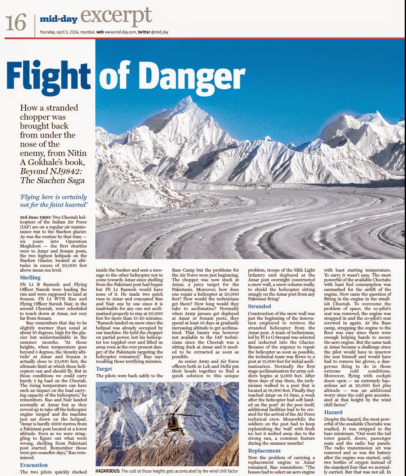 In less than a week, my book Beyond NJ 9842: The Siachen Saga, is being launched in New Delhi. It chronicles hitherto unknown and untold stories of guts, glory and innovation on the world’s highest and coldest battlefield. Here’s one excerpt carried by the Mumbai-based Mid-day newspaper last week. One correction. The book is now priced at Rs 699 and not Rs 799, as was originally planned. It will hit the bookstores and online portals like Amazon and Flipkart from next week.